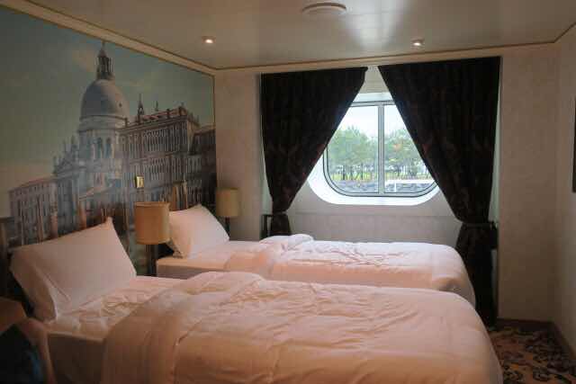 初日はよく分からず、、、とりあえず避難訓練に参加し、レストランでご飯を食べてたらいつのまにか出航している、、、。