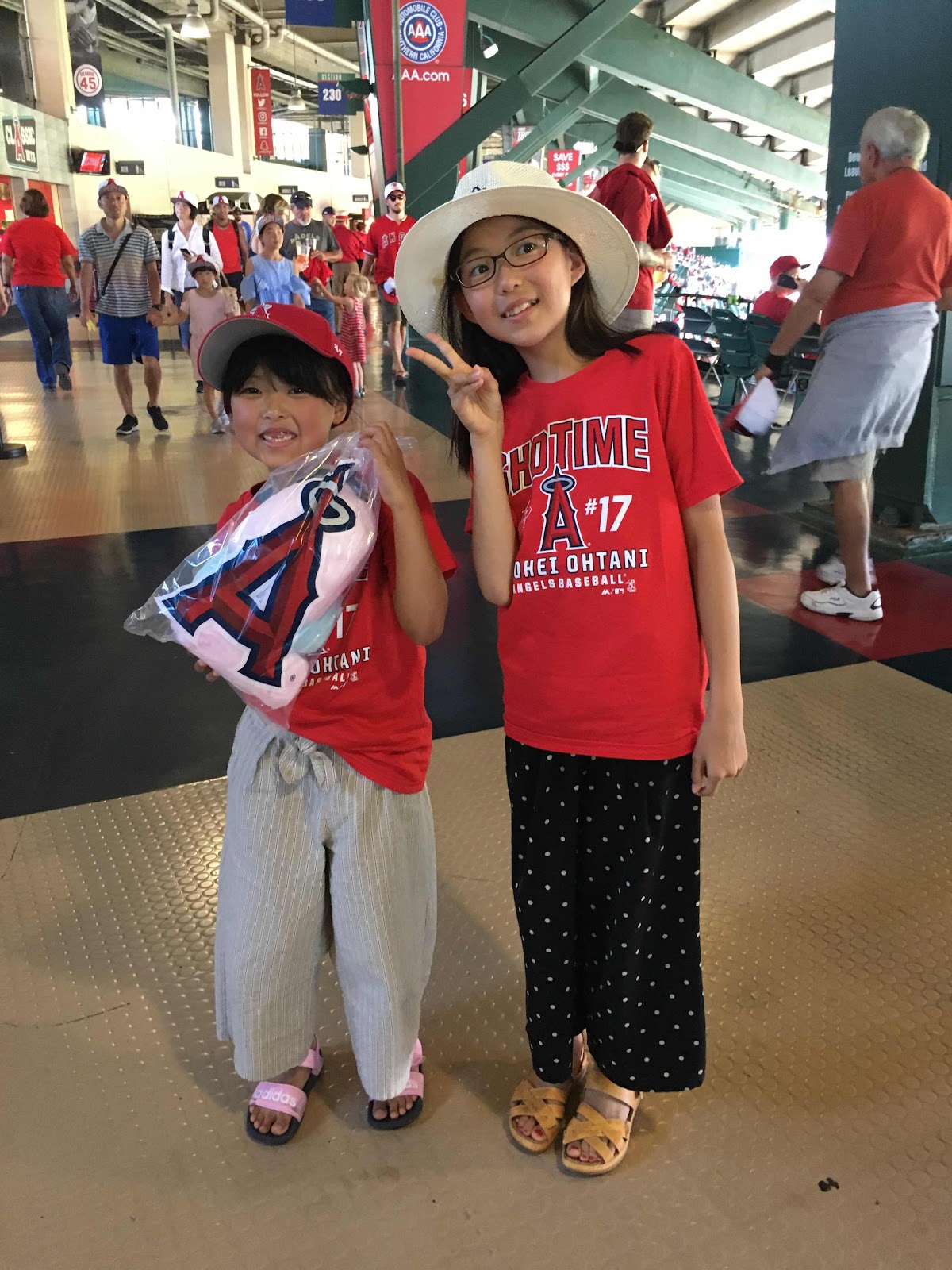 「今日はオオタニランドなんだ!写真を撮ってあげるよ!この看板持って!」と